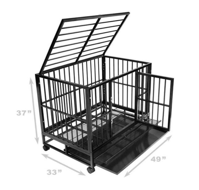 Практичен дизајн со двоен влез: Оваа единица за тешки професионални кафези за домашни миленици е особено прилагодена за кученца, миленичиња кои растат и раси со висока енергија, со горните и страничните пристапни точки. Влезната врата има двојни лизгачки брави, додека горната пристапна точка има една брава.